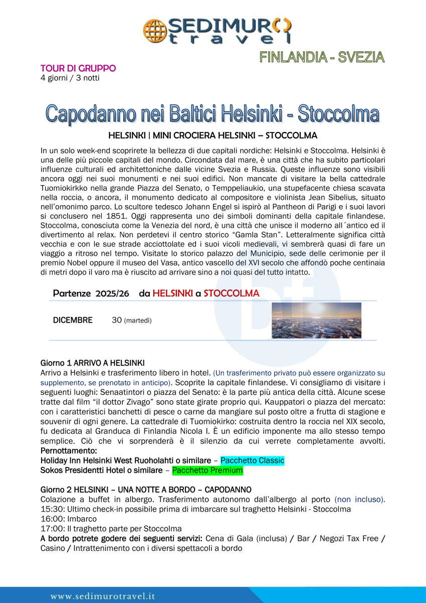 Capodanno nei Baltici Helsinki – Stoccolma 4 giorni